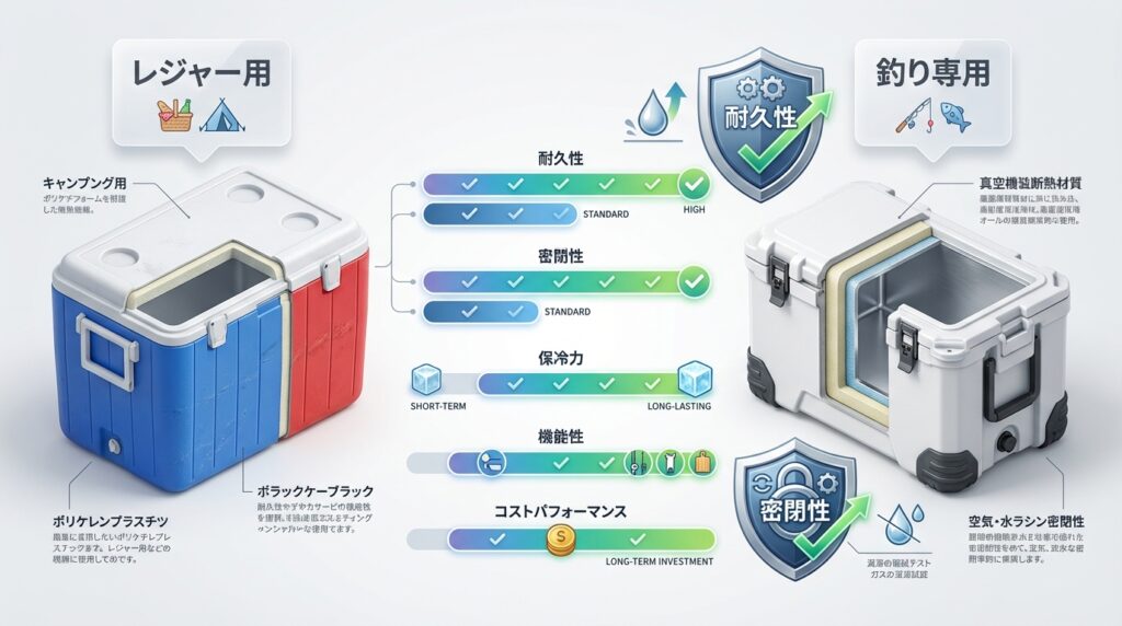 レジャー用と釣り専用品における密閉性と耐久性の違い