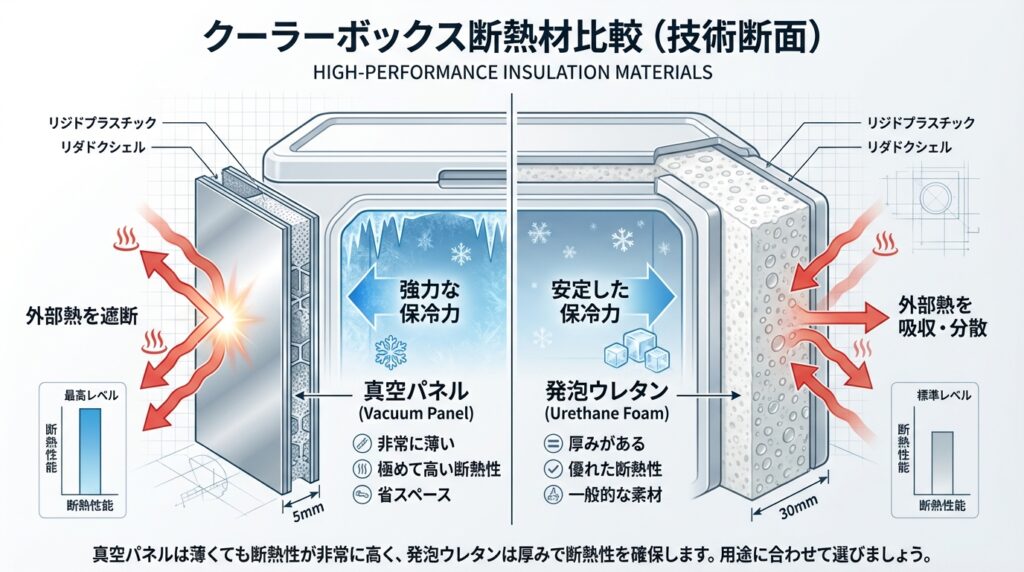 断熱材の種類と保冷力|真空パネルと発泡ウレタンの比較