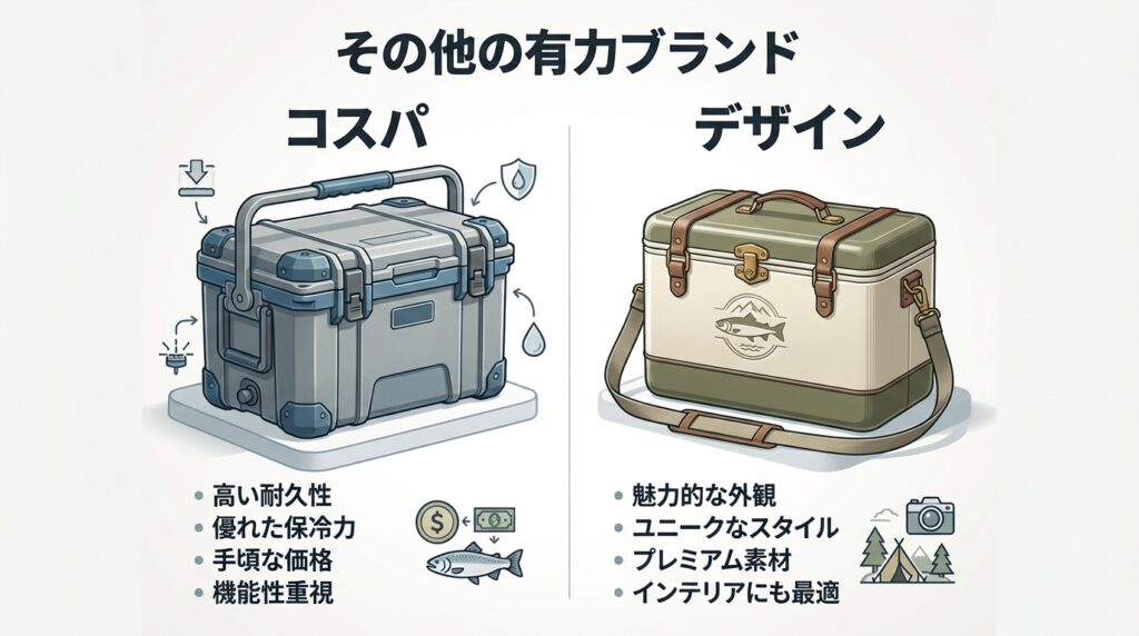 国内2大メーカーが「性能と信頼」の頂点にあることは間違いありませんが、コストパフォーマンスや特定のデザイン性を重視する場合、その他のブランドも極めて有力な選択肢となります。特に「伸和(SHINWA)」や「サンカ(SANKA)」、「JEJアステージ」といった日本のプラスチック製品メーカーが手がけるクーラーボックスは、ホームセンター等で手軽に入手できる点が最大の魅力です。