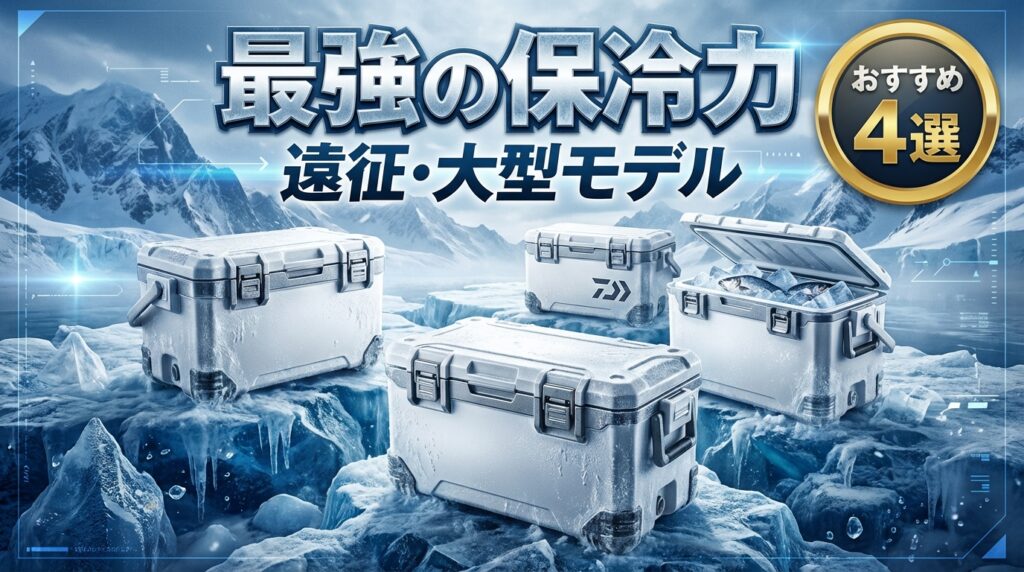 泊まりがけの遠征や、ブリ・ヒラマサ、マグロといった夢の大型魚を追い求めるシーンでは、クーラーボックスに求められる性能の次元がこれまでのモデルとは一線を画します。真夏の炎天下で長時間鮮度を保ち続ける「絶対的な保冷力」はもちろん、巨体を折り曲げずに収納できる「内寸の広さ」、そして氷と魚で数十キロに達する重量でも一人で運搬できる「機動性」が不可欠となるからです。