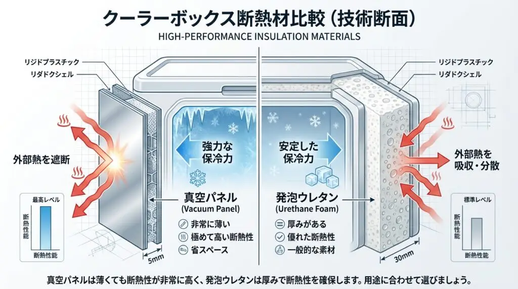 断熱材の種類と保冷力|真空パネルと発泡ウレタンの比較