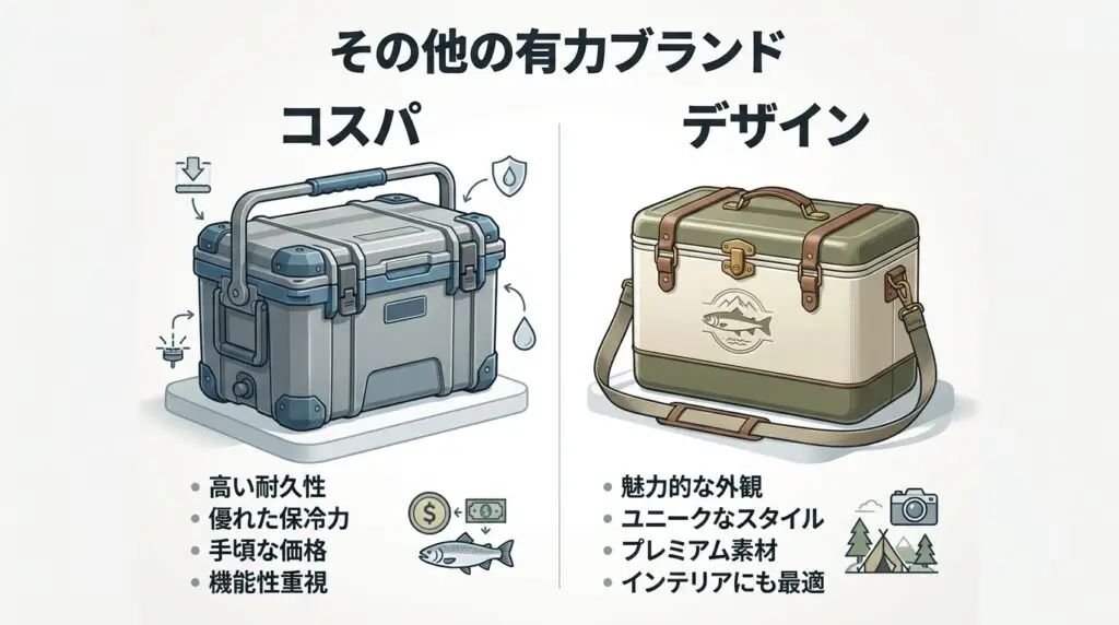 国内2大メーカーが「性能と信頼」の頂点にあることは間違いありませんが、コストパフォーマンスや特定のデザイン性を重視する場合、その他のブランドも極めて有力な選択肢となります。特に「伸和(SHINWA)」や「サンカ(SANKA)」、「JEJアステージ」といった日本のプラスチック製品メーカーが手がけるクーラーボックスは、ホームセンター等で手軽に入手できる点が最大の魅力です。