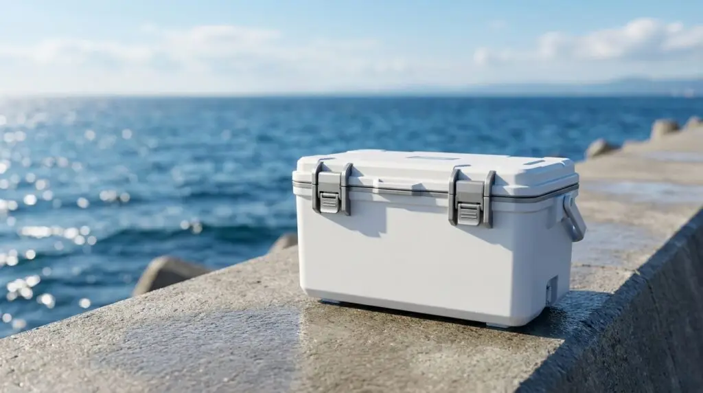 また、耐久性においても両者は別物です。釣り場は岩場やコンクリートの堤防、揺れる船上など、足場が不安定で衝撃が加わりやすい環境です。一般的なレジャー用クーラーに大人が座ると、フタが変形したり破損したりするリスクがありますが、多くの釣り専用品は「大人が座る」ことを前提に設計されています。リブ構造で補強されたボディは歪みにくく、蝶番やバックルなどの可動部にもステンレス等のサビに強い素材が使われています。この「壊れない頑丈さ」こそが、断熱材の性能を長期間維持し、結果として魚の鮮度を守ることに繋がるのです。