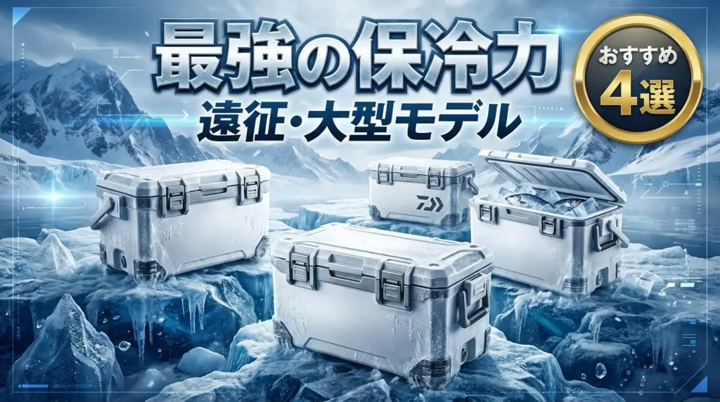 泊まりがけの遠征や、ブリ・ヒラマサ、マグロといった夢の大型魚を追い求めるシーンでは、クーラーボックスに求められる性能の次元がこれまでのモデルとは一線を画します。真夏の炎天下で長時間鮮度を保ち続ける「絶対的な保冷力」はもちろん、巨体を折り曲げずに収納できる「内寸の広さ」、そして氷と魚で数十キロに達する重量でも一人で運搬できる「機動性」が不可欠となるからです。