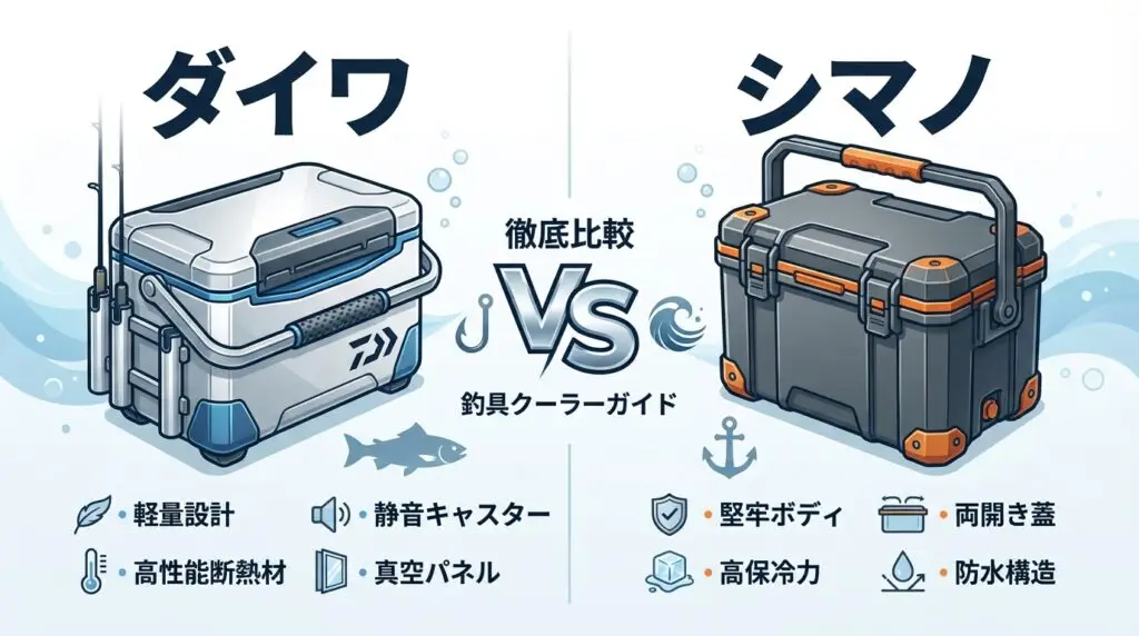 釣り場を見渡すと、ベテランアングラーの多くが「DAIWA(ダイワ)」か「SHIMANO(シマノ)」のロゴが入ったクーラーボックスを使用していることに気づくはずです。数あるアウトドアブランドや安価な製品ではなく、なぜこの2大釣り具メーカーが圧倒的な支持を得ているのでしょうか。その理由は、単なるブランドネームではなく、過酷な塩害環境やハードな使用に耐えうる「信頼性」と、現場の声から生まれた「実用主義」にあります。