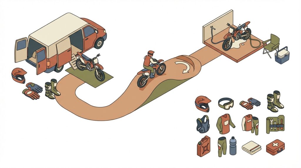 したがって、まだ自分の装備を持っていない段階では、車両だけでなくウェアやプロテクターまで含めた「フルレンタル」が可能かどうかを公式サイトなどで必ず確認しましょう。これが、気軽にオフロードデビューを成功させるための賢いコース選びの鍵となります。