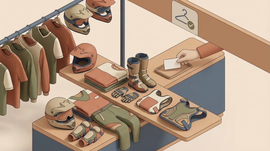 オフロードバイクに挑戦する上で、専用の装備をレンタルできるかどうかは、特に初心者にとってコース選びを左右する極めて重要なポイントです。なぜなら、安全に走行するために必要なヘルメット、ゴーグル、プロテクター、ブーツ、ウェアなどを自分で一から揃えるとなると、バイク本体とは別に多額の初期費用がかかってしまうからです。