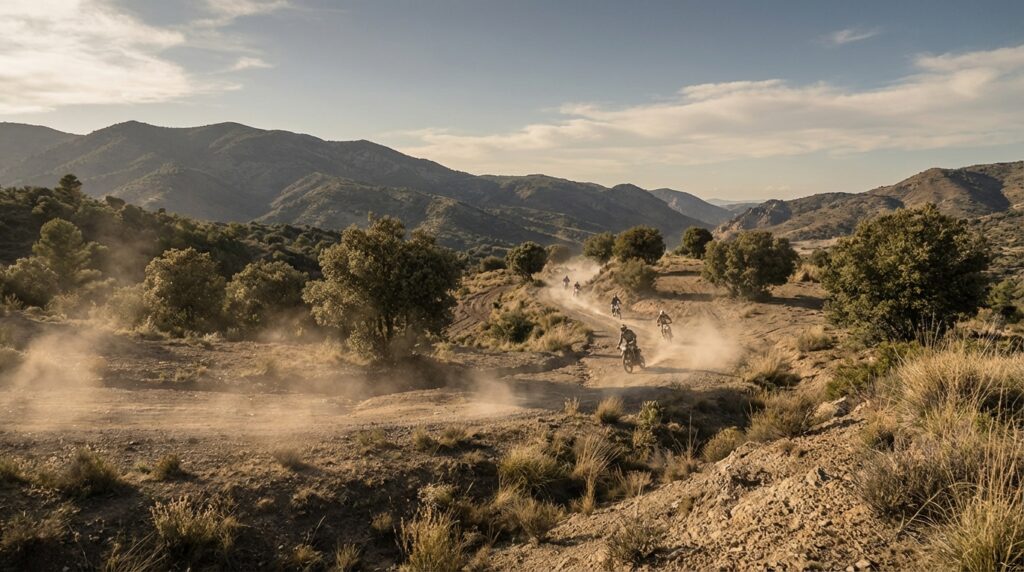クロスカントリー: モトクロスとエンデューロの中間的なスタイルで、平坦なエリアから林間エリアまで、変化に富んだコース設定が特徴です。