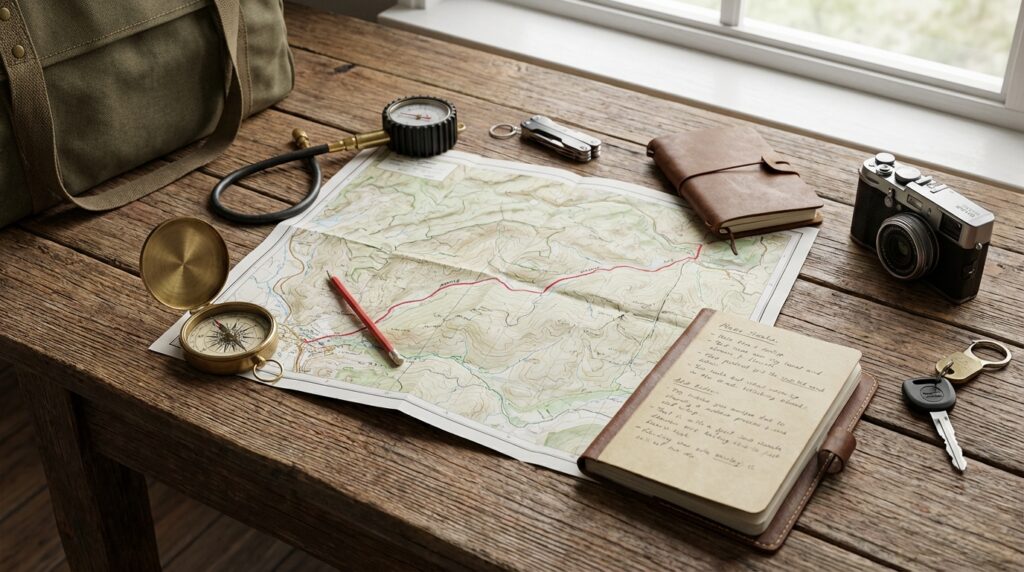 道に迷うリスクを避けるため、電波がないことを前提とした準備が必須です。紙の地図とコンパスを予備で持っておくと、さらに安心でしょう。