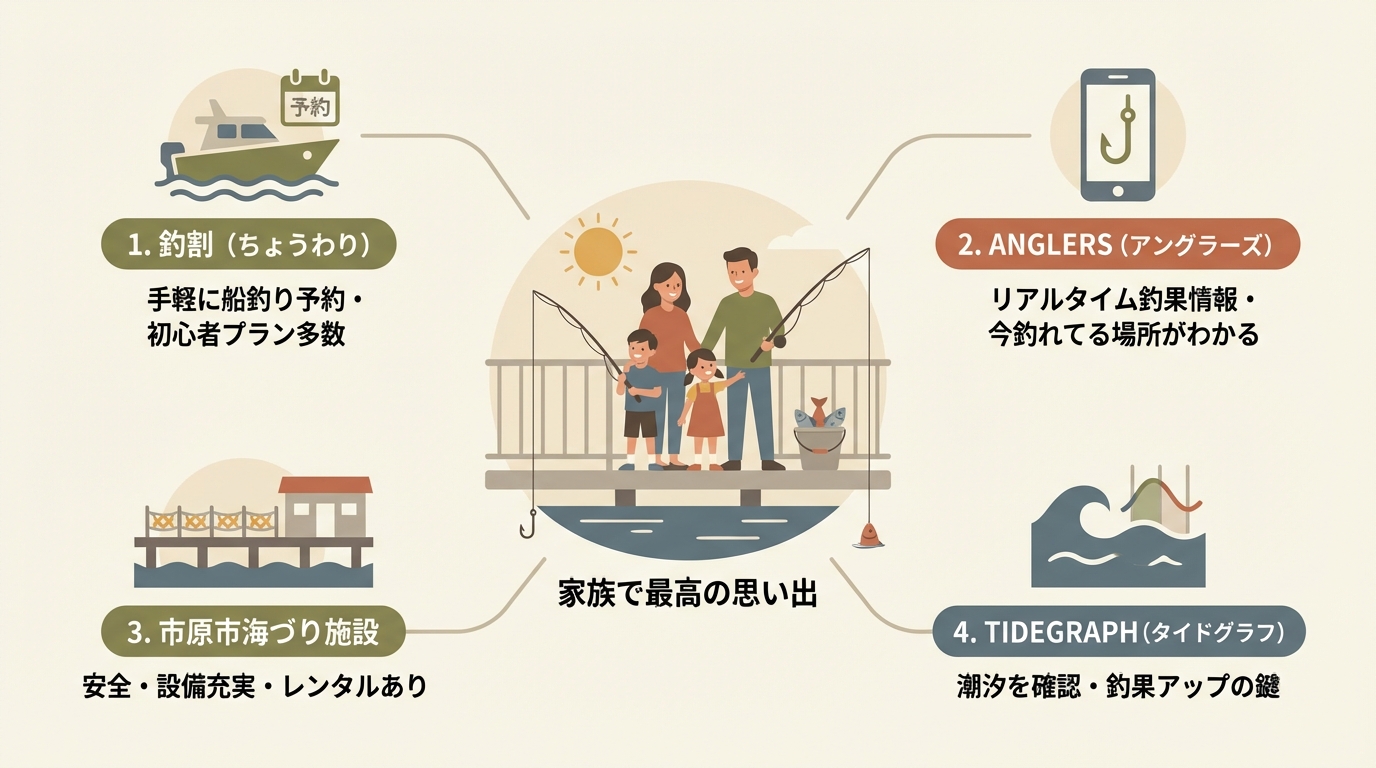 千葉県で家族と釣りを楽しむなら必見!初心者や子供連れでも安心して釣れるポイントを厳選紹介。トイレ・駐車場の有無はもちろん、釣り禁止エリアやマナー、もし釣れなくても楽しめる周辺情報まで網羅。この記事で失敗しない最高の思い出を!